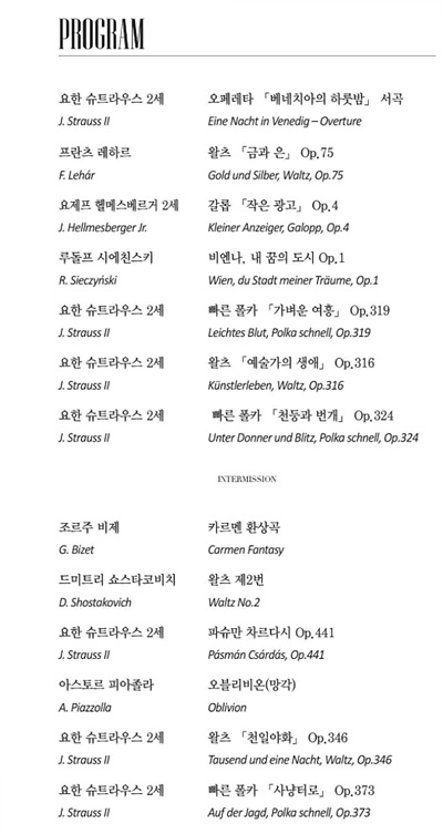 약 2시간 동안 앵콜곡 3곡을 포함해서 총 17곡이 연주되었다.