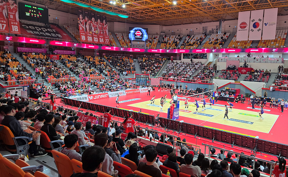 첫세트는 25:21로 페퍼저축은행이 이겼다.